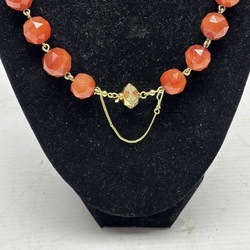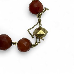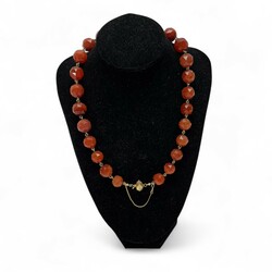 | Omschrijving | Een collier met gefaceteerde carneolen kralen met hieraan een gefaceteerd 14 krt (585/1000) gouden slot. |