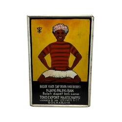 | Omschrijving | Een jaren 20/30 blikken handbeschilderd indonesisch reclamebord. Met tekst in het indonesisch en in het Nederlands: TOKO Export Maatschappij, voorheen B. van Leeuwen & Co, Soerabaya. |