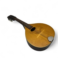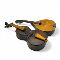 | Omschrijving | Een kopie van een "Viola da Gamba Maestro". Model viool maar met een dubbel dikke kast. Gemerkt met een label aan de binnenzijde. 20e eeuws. Hierbij een Italiaanse madoline. |
