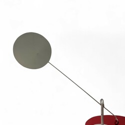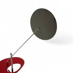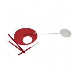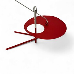 | Omschrijving | Een metalen mobile sculptuur op standaard, 66 cm hoog. In het rood met wit. Design van "stylemaster'" San Ming. (geb.1955). Ontwerp en uitvoering. |