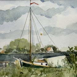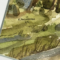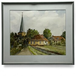 | Omschrijving | Lot van twee aquarellen op papier, één met voorstelling van een zeilboot aan de wal, één met voorstelling van kerkdorp. Beide gesigneerd Fré Twijnstra (Leeuwarden 1924 - Marsum 2010). |