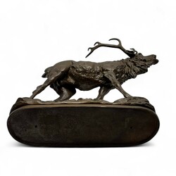 | Kavel | 1923. Gebronsd metalen beeld: brullend hertenbok |