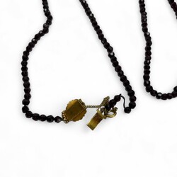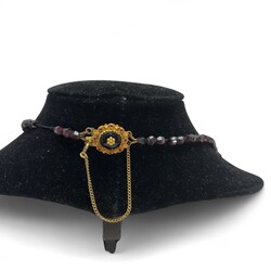| Omschrijving | Een lang 20e eeuws granaten collier met 14 karaats (585/1000) geelgouden slot, filigrain bewerkt met granaat/amethist. Slot geschikt voor tweerijig. |