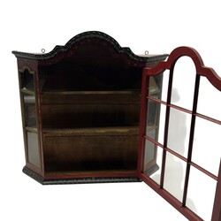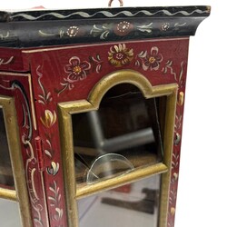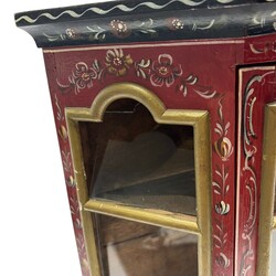 | Omschrijving | Een eikenhout Hindeloper beschilderd wandvitrinekast. Met twee houten leggers. |