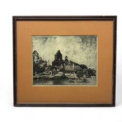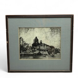 | Omschrijving | Hollandse School, tweemaal dezelfde litho: stadsgezicht vanuit het water, met kerkje in de verte, niet gesigneerd |