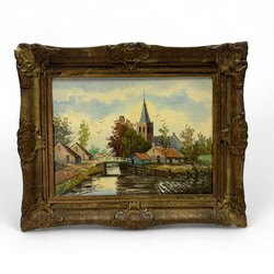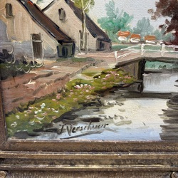 | Omschrijving | Schilderij, olieverf op doek. Dorpsgezicht, verso tekst ‘Gezicht op Allingawier’. Linksonder gesigneerd ‘J. Verschuur’. |