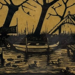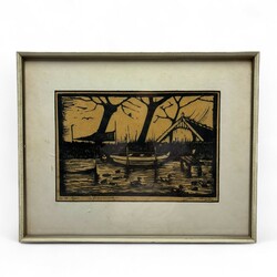 | Omschrijving | Houtsnede op papier, voorstelling van een roeibootje in het water, met eendjes op de voorgrond en fuik op de achtergrond. Titel ‘Abcoude’, rechtsonder gesigneerd Jac de Beer (1888-1946) |
