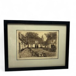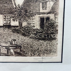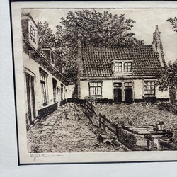 | Omschrijving | Ets op papier, voorstelling van een hofje te Leeuwarden. Rechtsonder gesigneerd Jan Disselsma (Marssum 1894 - Arnhem 1984), gedateerd (in de druk) 1919. |