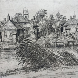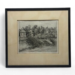 | Omschrijving | Ets op papier, Gezicht op Obergum vanaf Winsum. Rechtsonder gesigneerd Johan Dijkstra (Groningen 1896-1978), linksonder ‘epreuve ‘d artiste’ |