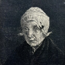 | Omschrijving | Ets op papier, 'Katwijkse oude vrouw'. Linksonder gesigneerd Jozef Israëls (Groningen 1824 - Den Haag 1911). In passe-partout. |
