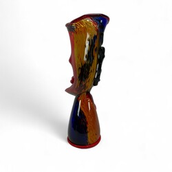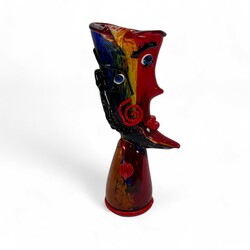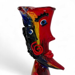 | Omschrijving | Kleurrijk glazen sculptuur in de vorm van een abstract gezicht, naar ontwerp van Picasso, modern |