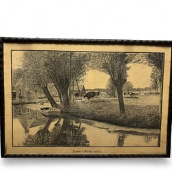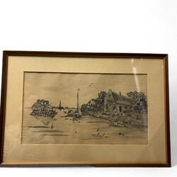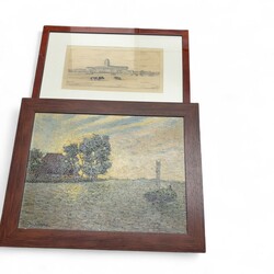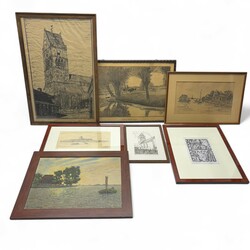 | Omschrijving | Lot diverse 20e eeuwse kunstwerken, o.a. een houtsnede, voorstelling van de Martinitoren te Bolsward, onduidelijk gesigneerd, een potloodtekening van de kerk van Stiens, een potloodtekening 'Zomer in Rottevalle' door B.A. Nijenhuis en een schilderij, Grou, door. R. d. Jong, gedateerd 1946. |