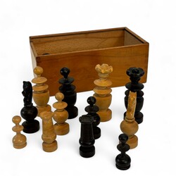 | Conditie | Schrijfkist met barst in de klep, houten schaakset lichte gebruikssporen en incompleet -één zwarte pion ontbreekt- |