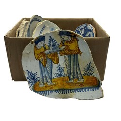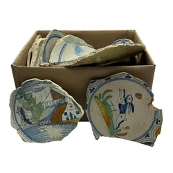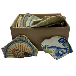 Lot majolica scherven, o.a. met zeldzame voorstellingen