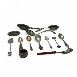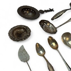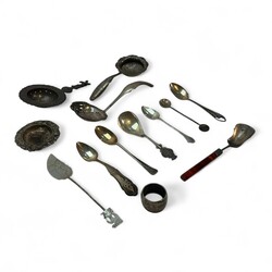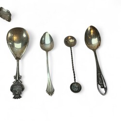 | Omschrijving | Een lot met vooral tweede gehalte (835/1000) zilveren schepwerk, bestaande uit suikerschep, theelepels, theezeven en strooilepels. |