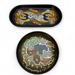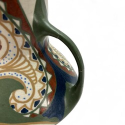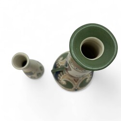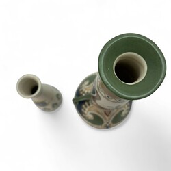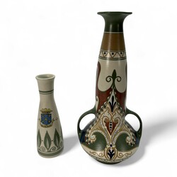 | Omschrijving | Lot met vijf stuks divers Hollands plateel, grootste is 31 cm hoog. Bestaande uit vazen, jardinaire en een onderschotel Fabrieken: ESKAF, Distel, Ivora Arnhem en Ed Antheunis |