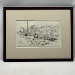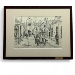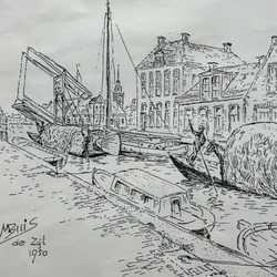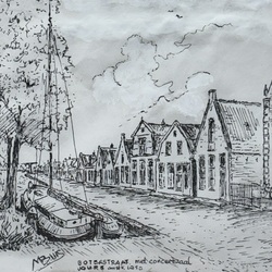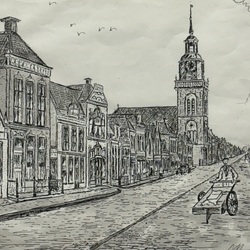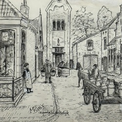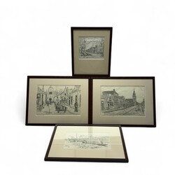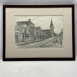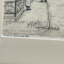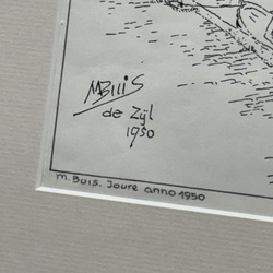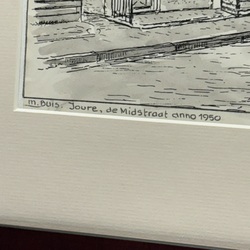 | Omschrijving | Lot van vier inkttekeningen op papier, voorstelling van Joure en omgeving rond 1950 (‘De Midstraat anno 1950’, ‘ingang Sluisdijk’, ‘boterstraat met concertzaal’ & ‘de Zijl). Allen gesigneerd Marten Buis (Duitsland 1914 – Joure 1994). |