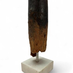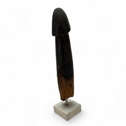 | Omschrijving | Lot van twee stuks etnografica: een houten neksteun en een fallus, mogelijk Fon, Togo/Ghana, gemonteerd op marmeren sokkel. |
