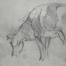 | Omschrijving | Potloodtekening op papier, voorstelling van een koe. Rechtsonder gemonogrammeerd 'PHvA' = Piet Hein van Asperen (Harlingen 1895 - Leeuwarden 1969). |
