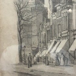| Omschrijving | Potloodtekening op papier, Raadhuistoren Harlingen. Rechtsonder gemonogrammeerd 'PHvA' = Piet Hein van Asperen (Harlingen 1895 - Leeuwarden 1969). |