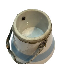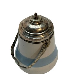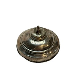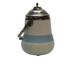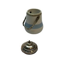 | Omschrijving | Porseleinen zwavelstokkenpotje met zilveren deksel en hengsel |