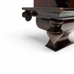 | Conditie | Inclusief gewichtje, opwindsleutel en slinger. Onderzijde met enkele sporen van houtworm. Houten ornamentje aan onderzijde, en drie kapornamentjes ontbreken. |