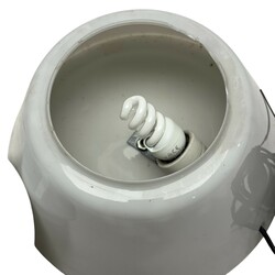 | Omschrijving | Een 20e eeuwse witglazen tafellamp, taps toelopend model. Ontwerp Sergio Asti, uitvoering Raak, ca. 1970. |