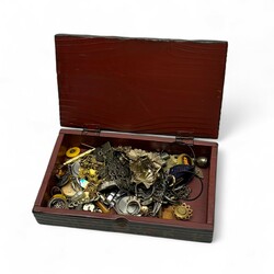 | Omschrijving | Lot divers bijoux in sieradenkistje, waaronder een jaren '50 horloge, Costal en diverse zilveren sieraden |