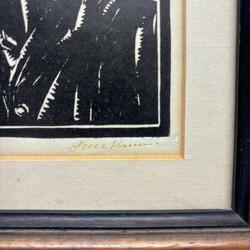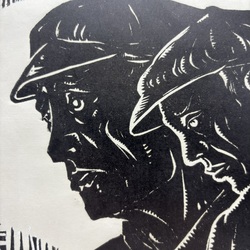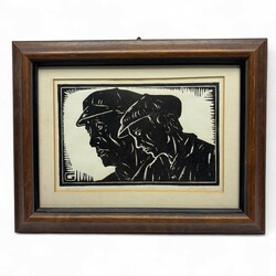 | Omschrijving | Houtsnede op papier, portret van een vader en zoon. Rechtsonder onduidelijk gesigneerd, mogelijk een werk van Sierd Geertsma (Appelscha 1896 – Haulerwijk 1985) |