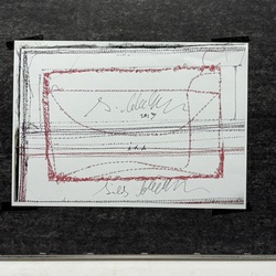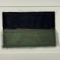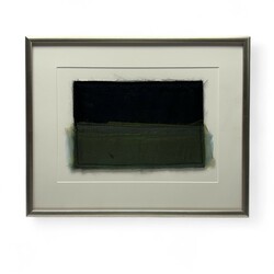 | Omschrijving | Textielcollage met zwart en blauw-geel lapje. Verso gesigneerd Sies Bleeker (Heerenveen 1941-2014), gedateerd 2013. |