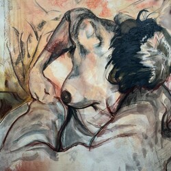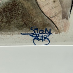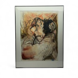 | Omschrijving | Sjon ten Berg (1963), vrijend paar, gemengde techniek op papier, rechtsonder gesigneerd |