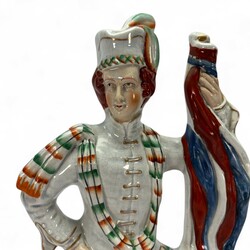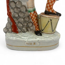 | Omschrijving | Een antiek 19e eeuws Staffordshire sculptuur, voorstelling van een soldaat, met opschrift ‘War’. |