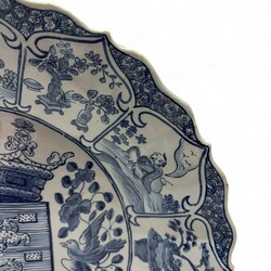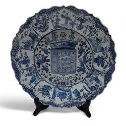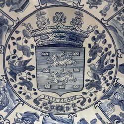 | Omschrijving | Een antieke 19e eeuwse aardewerken schotel, van Hulst Harlingen. Blauw-wit decor met op het plat het wapen van Friesland, omring door medaillons met Chinoiserie motieven. Ongemerkt, eerste helft 20e eeuw. |
