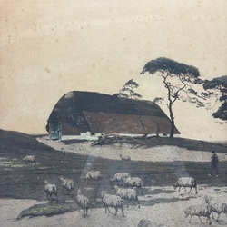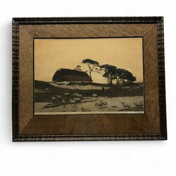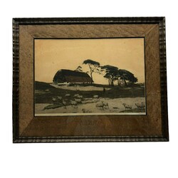 | Omschrijving | Grote kleurenets. Schaapskooi bij Epe. Rechtsonder gesigneerd Tjeerd Bottema (Langezwaag 1884 - Katwijk 1978) |