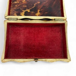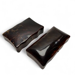 | Omschrijving | Twee 19e eeuwse schilpad deskeldoosjes, 13 x 9 x 5 cm en 15 x 8 x 6 cm. Gave exemplaren, alleen 1 pootje missend. |