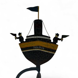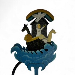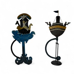 | Omschrijving | Twee beweegbare sculpturen van beschilderd metaal: ‘Panama schip met twee vaarders’, en ‘Ark van Noach’, beide op standaard, midden 20e eeuw |