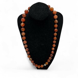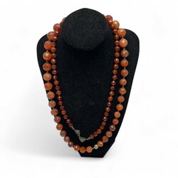 | Omschrijving | Twee colliers met gefaceteerde carneolen kralen met hieraan tweede gehalte (835/1000) zilveren sloten. |