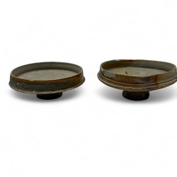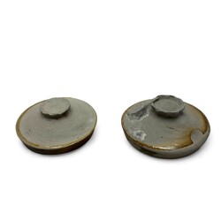 | Omschrijving | Lot van twee aardewerken drinknappen, vermoedelijk ca. 1300. |