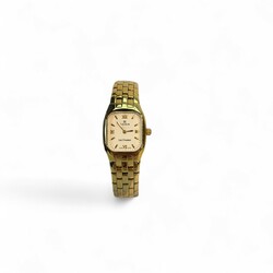 | Conditie | Zilverkleurige horloge had goudkleurige details, die zijn vrijwel volledig versleten; het faux leder van het verpakkingsdoosje is beschadigd |