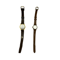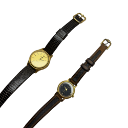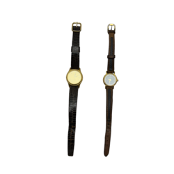 | Omschrijving | Twee goudkleurige stalen dames polshorloges Tissot, beide model ‘Stylist’, één met gematteerde kast, aan bruin lederen bandjes |