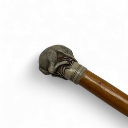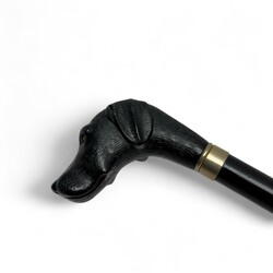| Omschrijving | Twee wandelstokken: één zwarte wandelstok met gestoken kunststof heft in de vorm van een hondenkop, één houten wandelstok met gestoken grijs kunststof heft in de vorm van een haasje |