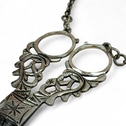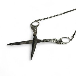 | Omschrijving | tweede gehalte zilveren naaischaar aan jasseron schakelcollier met gordelhaak, onduidelijk meesterteken |