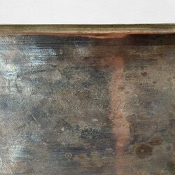 | Conditie | Eén hoek van het deksel met gat, gravering op deksel sleets, onderzijde gedeukt |