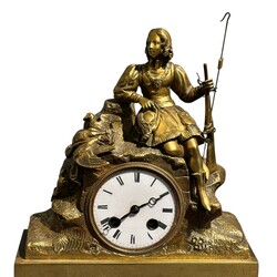 | Omschrijving | Beeldpendule bekroond door een jonge jager met geschoten wild, eind 19e/begin 20e eeuw |