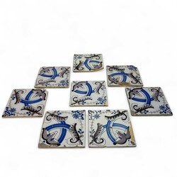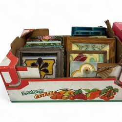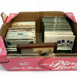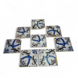 | Omschrijving | Verzameling aardewerk tegels: circa 25 vierpastegels met mangaanpaars en blauw decor: florale motieven, tien tegels met mangaanpaars en blauw sterdecor, en zes blauw-witte tegels met stermotief in de hoek, alle 19e eeuw |