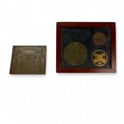 | Omschrijving | Lot van vier penningen: één bronzen Philips België penning, ‘Philips 1919-1944’ door W. Kreitz, en drie spoorwegpenningen, het 50-jarig en 75-jarig bestaan van de Hollandsche IJzeren Spoorwegmaatschappij. |