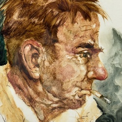 | Omschrijving | Will Berg (1921-2001), portret van een rokende man, olieverf en wasco op -waarschijnlijk- board, gesigneerd, daarbij: boek ‘Wil Berg: kunstenaar in beeld’, uitgeverij De Prom, Baarn, 1996 |