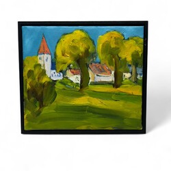 | Omschrijving | Schilderij, olieverf op doek. Dorpsgezicht, gemoedelijk Frankrijk. Verso gesigneerd Wim van der Veer (Leeuwarden, 1939). In zwarthouten baklijst. |