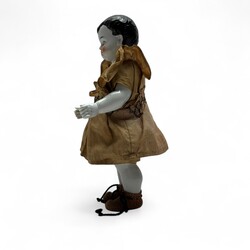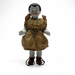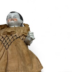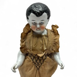 | Omschrijving | Een antieke 19e eeuwse Duitse wit porseleinen badpop, met beschilderd gezicht, stoffen jurkje en gebreide sokken. |