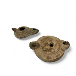 | Omschrijving | Zes antieke terracotta Griekse / Romeinse olielampjes. Met diverse formaten en decors versierd van oa boogschutters. Mogelijk een van latere datum. |